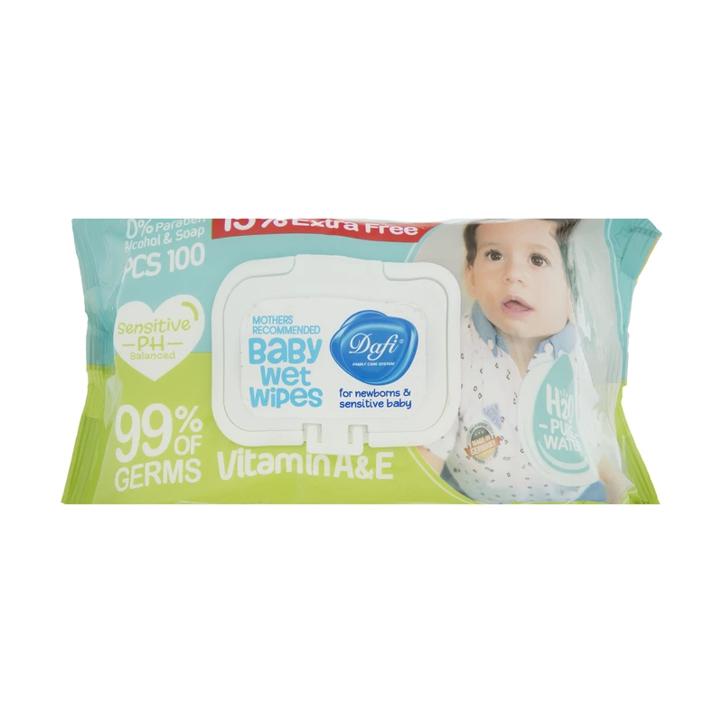 دستمال مرطوب کودک دافی بسته 100 عددی۱۸۰٬۰۰۰ تومان